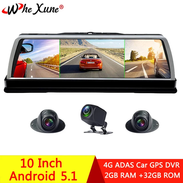 WHEXUNE 2019 New 4G 4 Channel Android 5.1 WIFI Car DVR Camera 10" IPS ADAS GPS Navigation Dash Cam Full HD 1080P Video Recorder